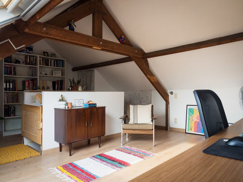 Die drei Elemente, aus dem jedes Haus erschaffen wird. Wir bauen mit diesen Elementen so unverkleidet wie möglich. Stahlträger, Holzbalken und alte Feldbrandziegel als Innensichtmauer. Der offene Anblick dieser Elemente, legt die Seele eines Hauses offen.